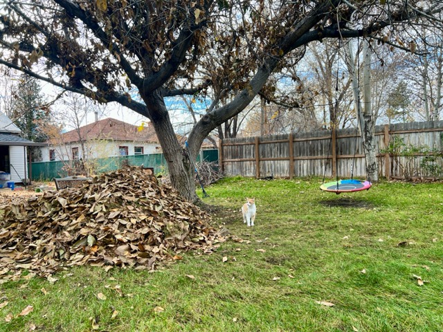 we have got a BUS LOAD of leaves!! Even Hobbes doesn’t know what to do. Not that he cares particularly…but still.