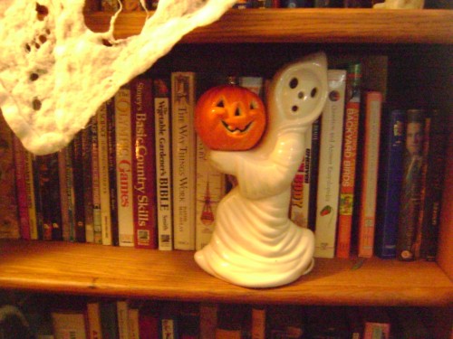 Love what you have done. I see a couple of things that you have that I have too. Like the ceramic ghost that holds a pumpkin. Except I don’t have the pumpkin anymore. And I have the same plastic skeleton. But my stuff is still up in the attic. I don’t think they will make it down this year.